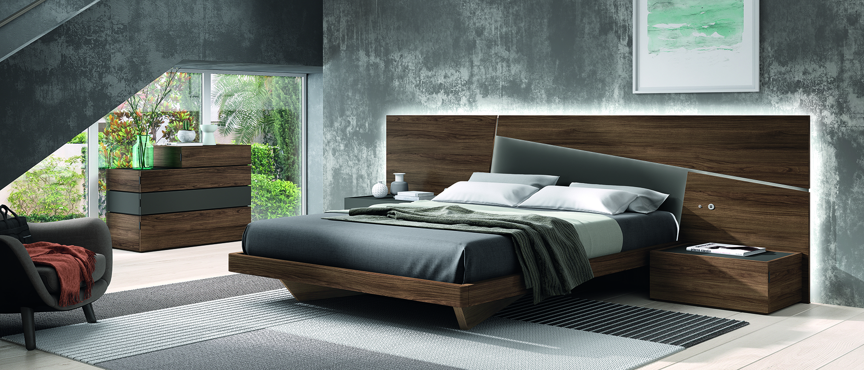 Dormitorio de matrimonio colección Tokyo , iluminación led acompañamiento y retroiluminación del cabecero. Opción de instalar doble interruptor conmutado y puerto USB doble para carga de dispositivos.