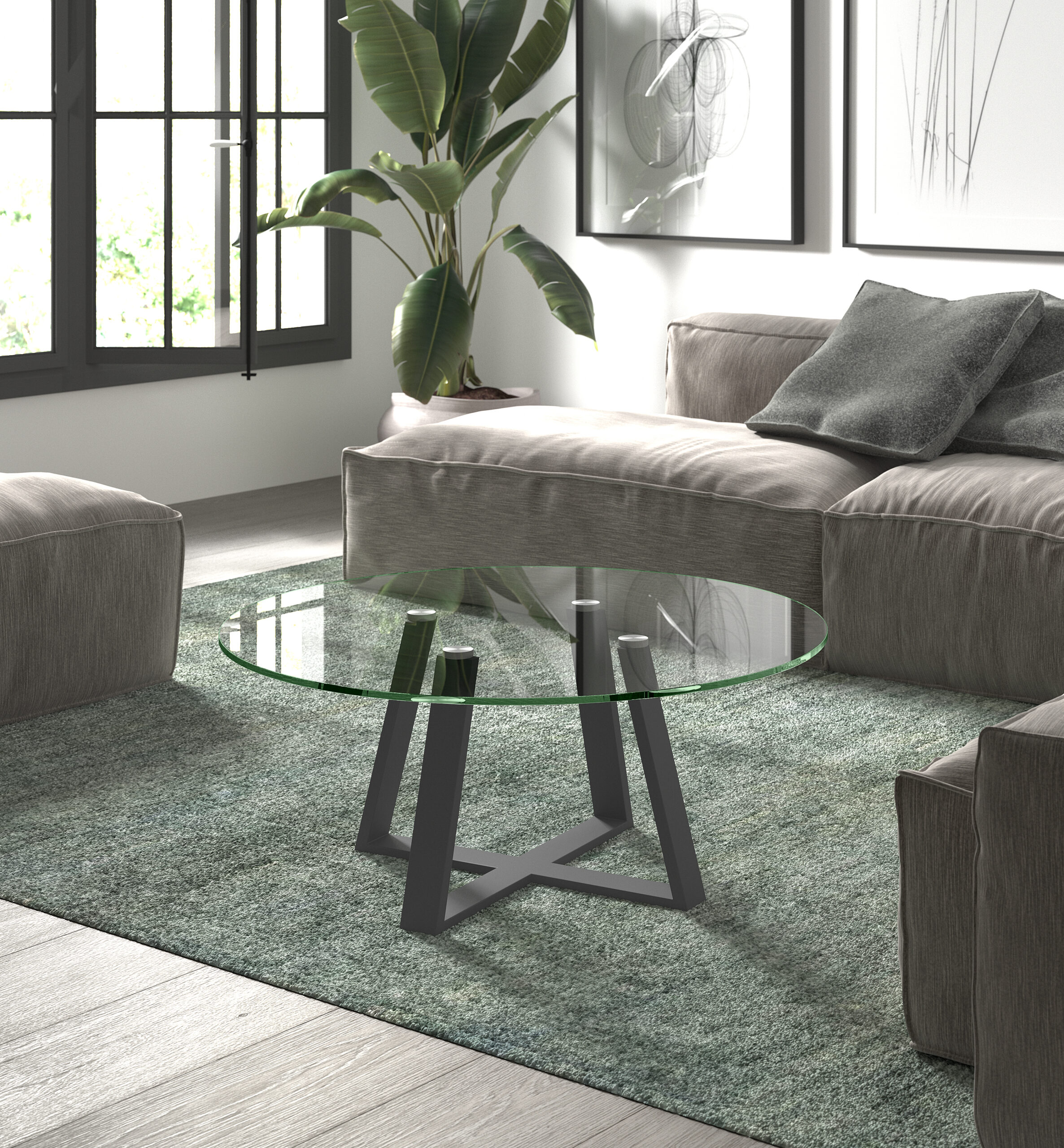 Mesa de centro fija , mas espacio visual para el centro de tu salón mediante mesas de centro con tapa de cristal templado con grueso de 1 cm.