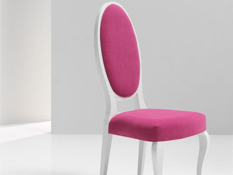 De estructura de haya maciza y cómodo respaldo, se puede barnizar o bien aplicar lacado de diferentes colores disponibles. Cuenta con un amplio abanico de tapicerías entre las que destacan las telas antimanchas «Aqua Clean».